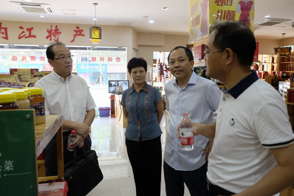 7月28日,内江市人大常委会副主任秦金保一行4人到市供销社调研深化供销社综合改革工作。调研组先后深入到市中区永安镇尚腾新村市中区农村合作经济联合会、江龙农村资金互助社、市供销社内江特产展示展销中心、农融网·天府农场电商平台等现场调研。在随后召开的调研座谈会上,市供销社主任蔡金芳就供销社基本情况、深化供销社综合改革的举措及成效、存在的问题、下一步工作打算以及意见建议等向调研组进行了详细汇报。