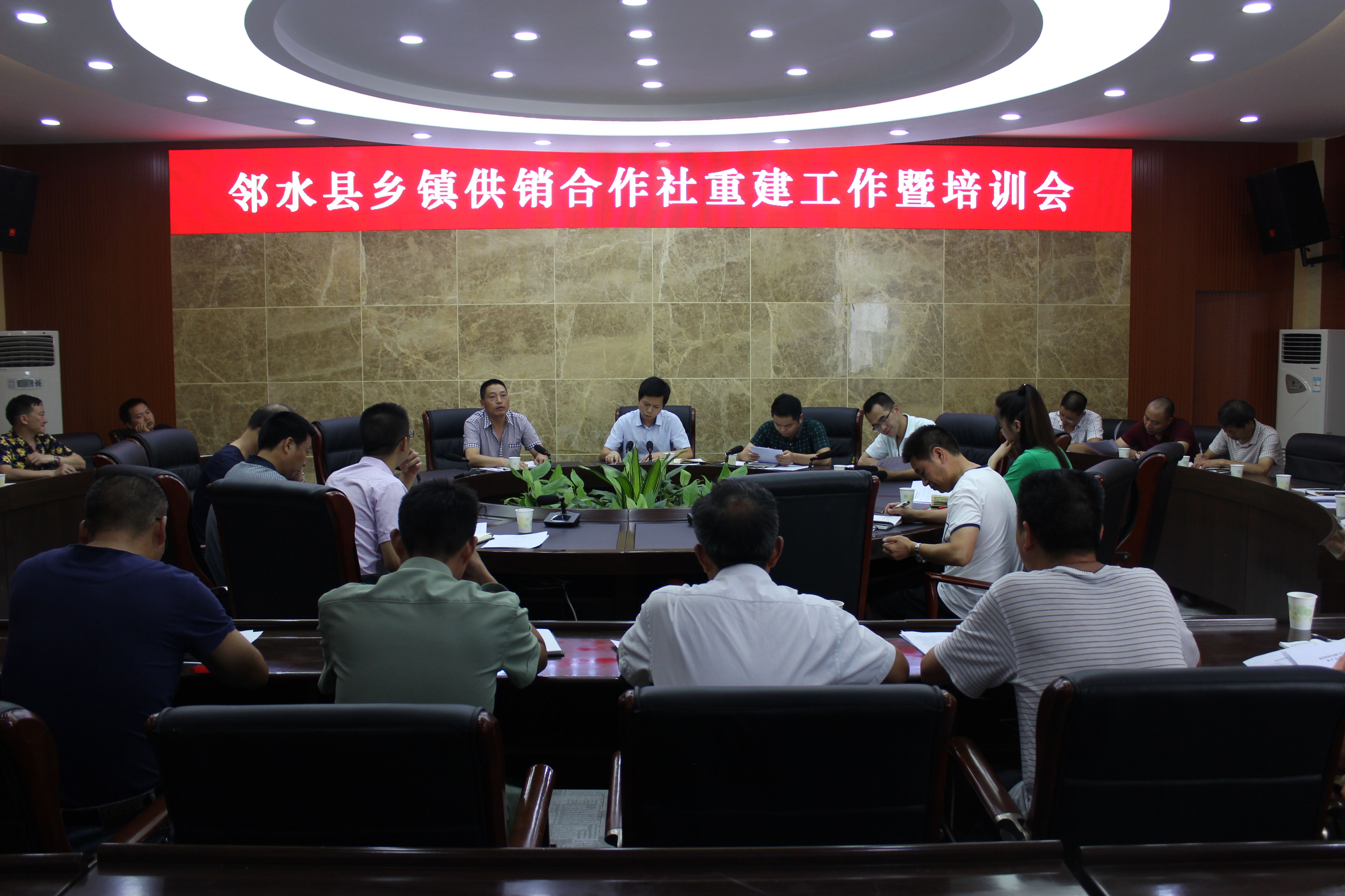 7月31日下午,邻水县政府县政府常务会议室召开基层供销合作社重建工作暨培训会,中共邻水县委常委、县政府副县长欧小松主持召开会议,12个在2017年有重建任务的乡镇的分管乡镇长、县级相关部门负责人、县供销社股级以上干部、基层社筹建工作召集人近40人参加了会议。