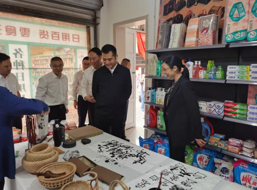尹秀英一行先后参观了新组建的石堰村基层供销社、石堰枷担桥文坊老街、大千书画纸展坊,并为老街开街揭幕。调研中,尹秀英充分肯定了夹江县供销社在围绕服务乡村文旅、保障农村供应和助力村集体发展等方面取得的成效。