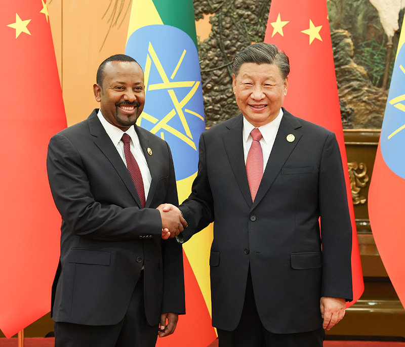 10月17日上午,国家主席习近平在北京人民大会堂会见来华出席第三届“一带一路”国际合作高峰论坛并进行正式访问的埃塞俄比亚总理阿比。新华社记者 丁林 摄