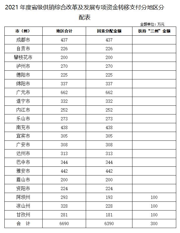 四川省供销合作社联合社2021年省级供销综合改革及发展专项资金分配方案公示