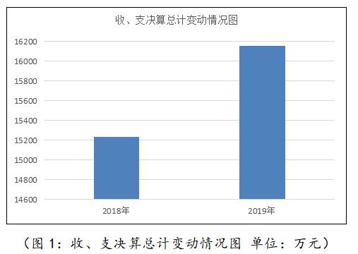 2019年度收、支总计16153.95万元。与2018年相比,收、支总计各增加918.07万元,增长6.03%。