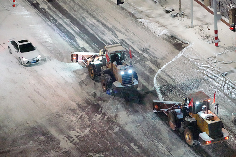 2023年12月16日,大型机械在山东省烟台市高新区街头清理道路积雪。新华社发(唐克 摄)