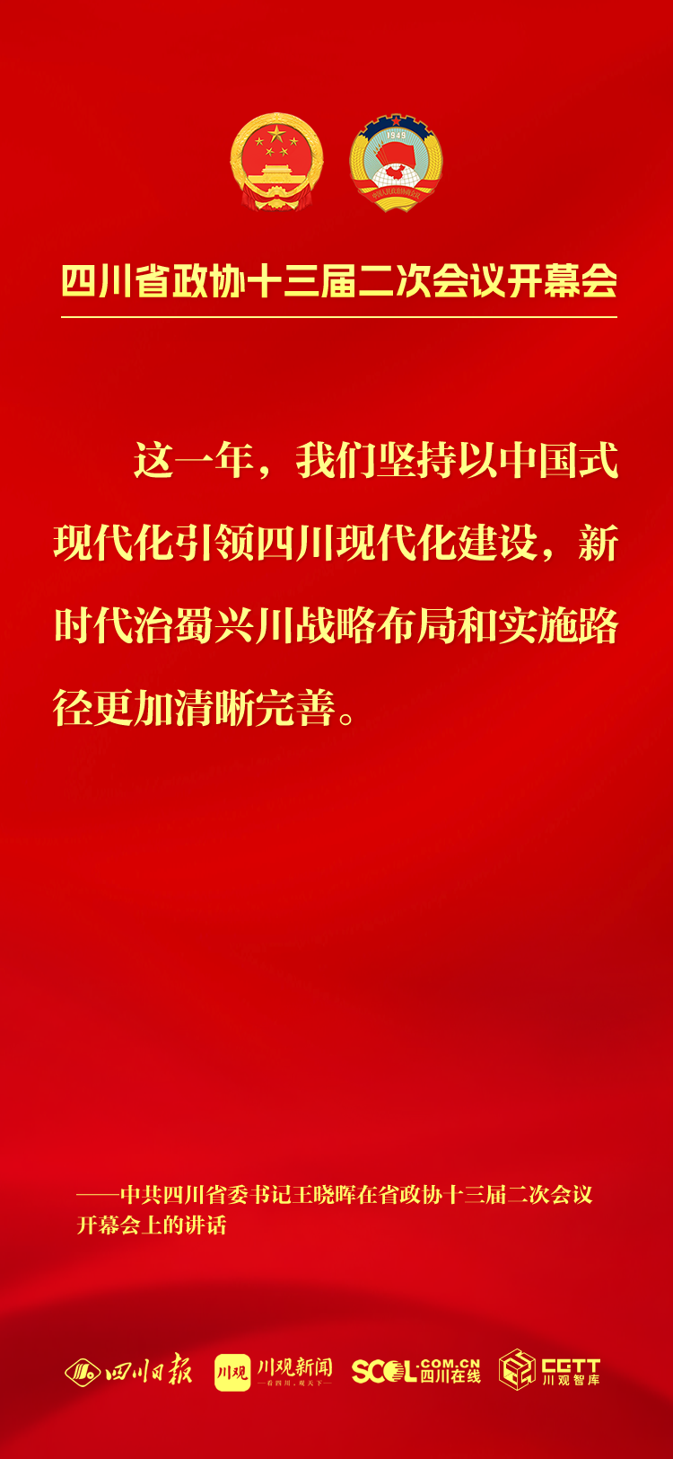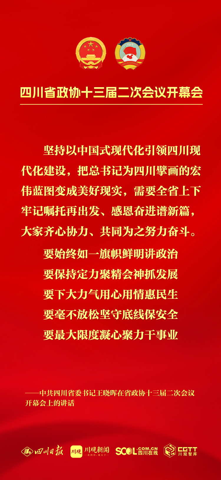 今年是中华人民共和国成立75周年,是实现“十四五”规划目标任务的关键一年,也是人民政协成立75周年,改革发展稳定任务艰巨繁重。坚持以中国式现代化引领四川现代化建设,把总书记为四川擘画的宏伟蓝图变成美好现实,需要全省上下牢记嘱托再出发、感恩奋进谱新篇,大家齐心协力、共同为之努力奋斗。