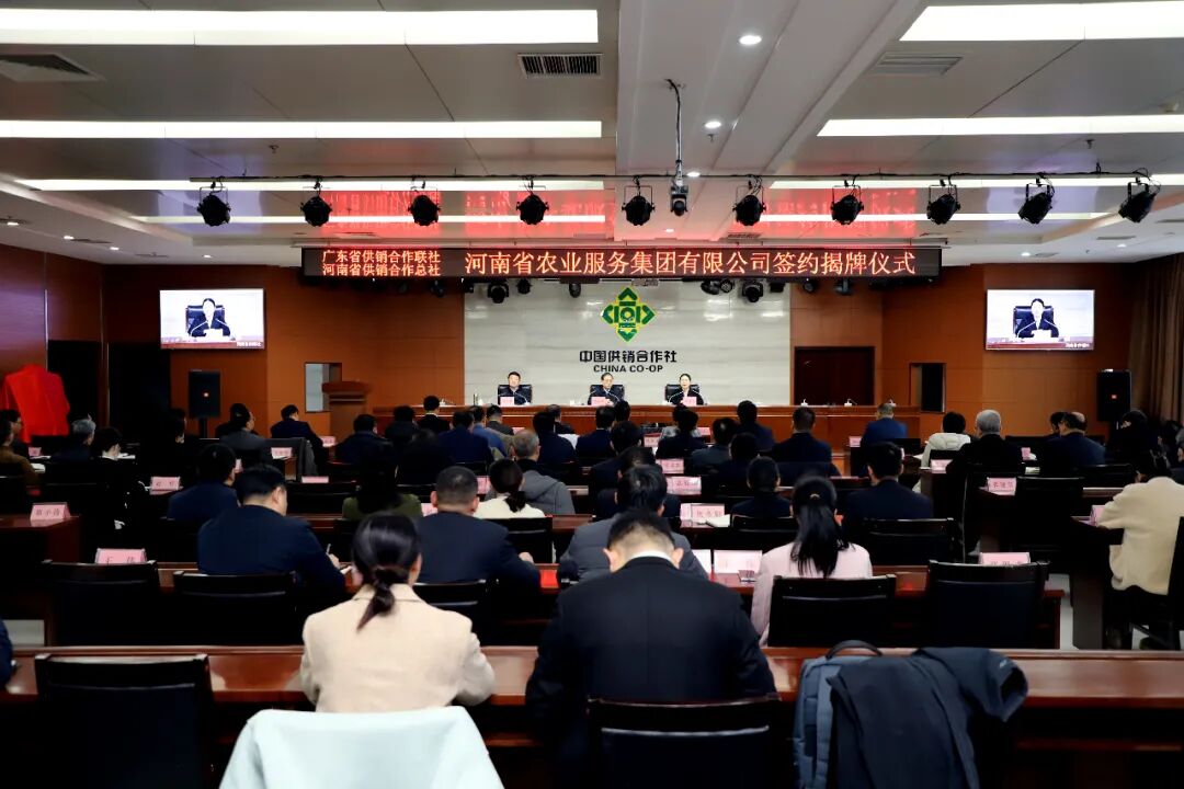 2月1日,河南省供销合作社与广东省供销合作社举行河南省农业服务集团有限公司揭牌仪式、广东省供销集团与河南省农资公司签约仪式。