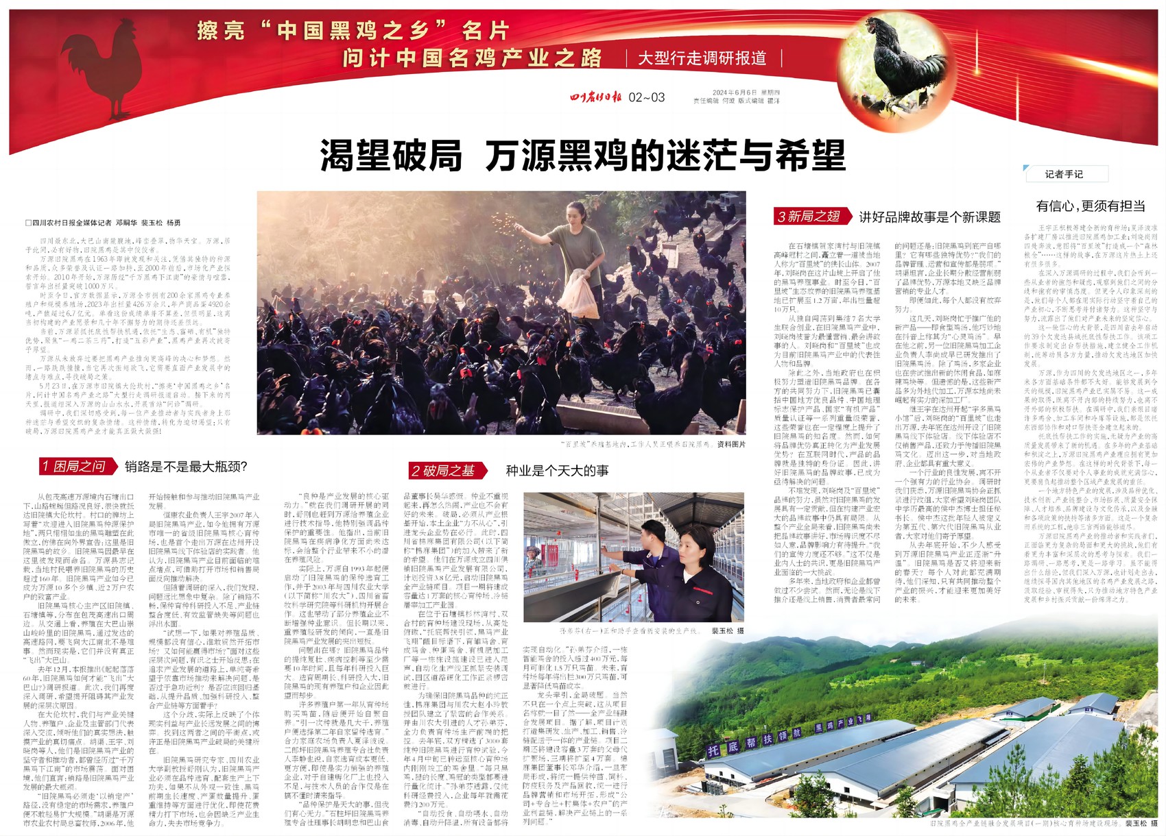 由四川日报报业集团主办的“擦亮‘中国黑鸡之乡’名片,问计中国名鸡产业之路”大型行走调研报道近日启动,本报记者深入万源的山山水水,开展了首站万源“问诊”调研,今日推出报道《渴望破局 万源黑鸡的迷茫与希望》。
