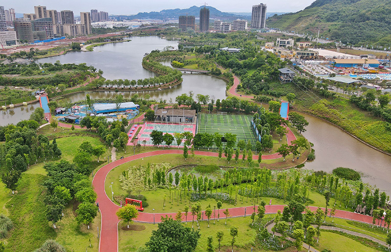 2023年6月1日拍摄的四川泸州渔子溪湿地公园(无人机照片)。泸州高新区渔子溪湿地公园的“前身”是三道河、新河沟和大桥河沟,三条支流汇聚于渔子溪湖汇入长江。原流域内生态环境差,污染严重,垃圾随处可见,是典型的城郊“臭水沟”。经过治理,渔子溪湖水质得到根本性改良,部分区域指标达到Ⅰ、Ⅱ类水标准。同时,治理后的渔子溪湖减少了水土流失,降低了直排长江的泥沙含量,达到节约水资源、水土保持和修复生态的目的。“臭水沟”蝶变成为“网红打卡地”。新华社记者 刘坤 摄