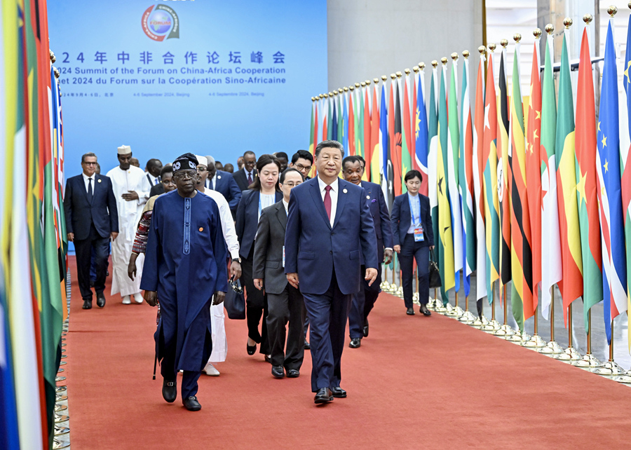 初秋北京,高远澄明。天安门广场和长安街两侧,鲜艳的五星红旗同53个非洲国家和非洲联盟旗帜迎风飘扬。