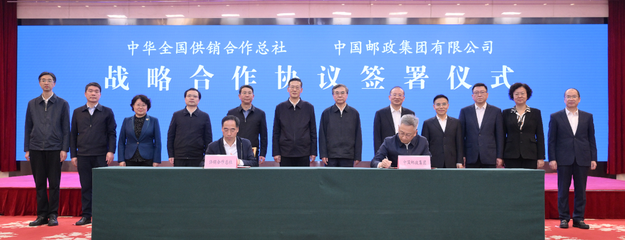 11月15日,中华全国供销合作总社与中国邮政集团有限公司在京签署战略合作协议。总社党组书记、理事会副主任韩立平,中国邮政集团有限公司党组书记、董事长刘爱力出席签约仪式并围绕双方加强合作进行座谈。总社党组成员、理事会副主任张梅林,中国邮政集团有限公司党组成员、副总经理曲云海代表双方签约。中国邮政集团有限公司党组副书记、总经理郑国雨参加签约仪式。