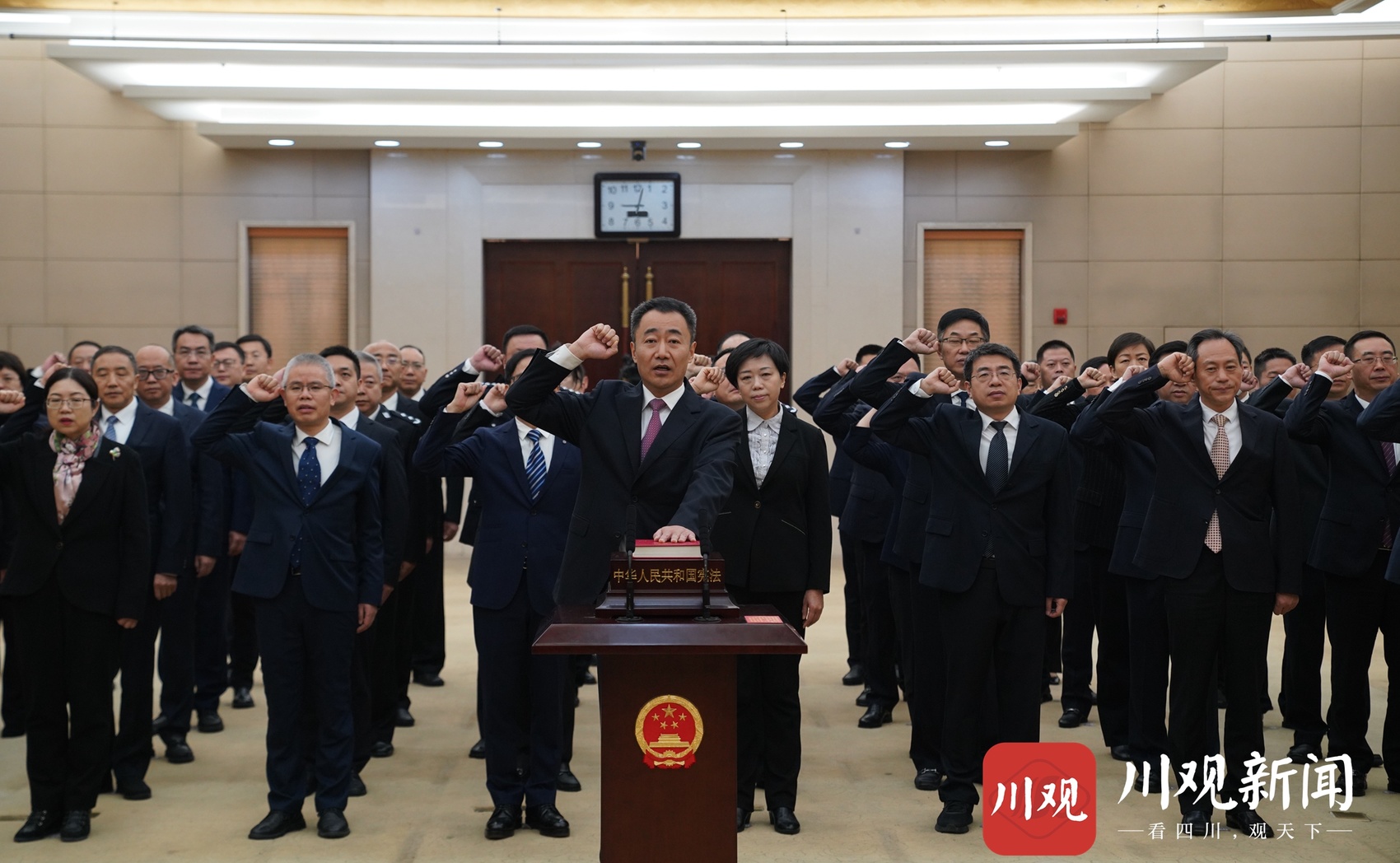 宣誓后,施小琳作了讲话。施小琳强调,希望大家将庄严宣誓和郑重承诺铭记于心、更要见之于行。要坚定筑牢政治忠诚,最根本的是忠诚于党、忠诚于人民,坚定不移用习近平新时代中国特色社会主义思想凝心铸魂,把坚定拥护“两个确立”、坚决做到“两个维护”落实到依宪施政、依法行政、依法履职的全过程各方面,高质量贯彻落实党中央、国务院和省委、省政府决策部署,当好执行者、行动派、实干家。要依法履行法定职责,崇尚法治、厉行法治,带头尊法学法守法用法,树牢正确的权力观、政绩观、事业观,坚持科学、民主、依法决策,勇于主动作为、敢于挺膺担当,全力以赴拼经济搞建设,坚定不移推动高质量发展,以实干实绩交出优异答卷。要深入践行为民宗旨。牢记“一切权力属于人民”,牢记人民政府头上的“人民”二字,始终站在群众立场想问题、作决策,办好每一件群众可感可及的民生实事,主动服务群众、服务企业、服务基层,形成共建共治共享的发展格局。要始终严明纪律作风。严格遵守廉洁从政各项规定,知敬畏、存戒惧、守底线,严于律己、严负其责、严管所辖,大力弘扬求真务实、真抓实干作风,用改革办法推动发展,用求解思维破解难题,用钉钉子精神抓好落实,为推动四川高质量发展作出新的贡献。
