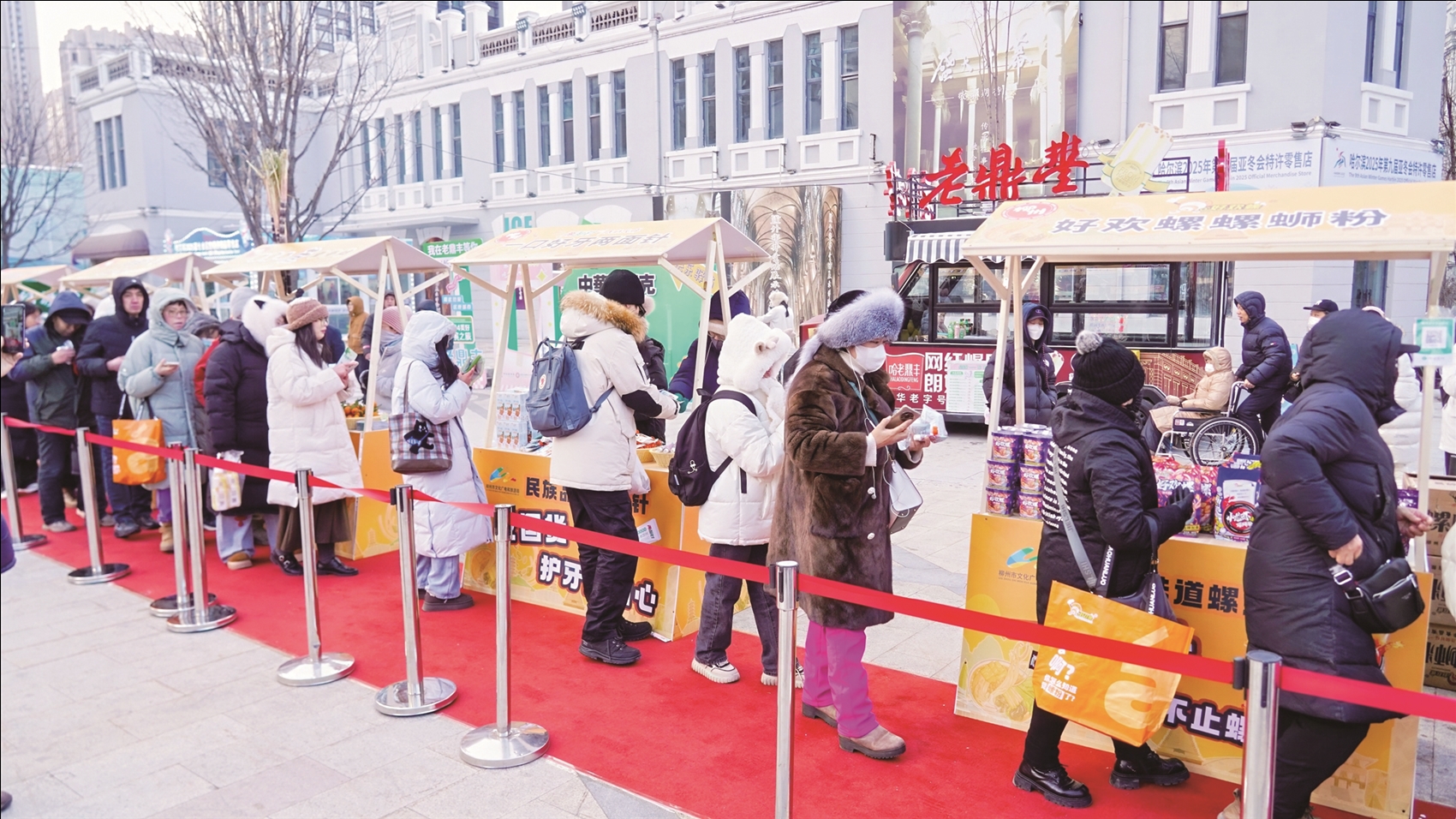 近日,“南北一家亲柳州@尔滨”——2024年冬游柳州(哈尔滨)文化旅游宣传推广活动“柳州供销大集巡游”在黑龙江省哈尔滨市中华巴洛克街区广场举办。活动精心设置了柳州好礼派发快闪区,广西柳州市新联供销集团有限公司跨越3300公里,将优质“柳州好物”融安金橘、甘蔗、柚子、酸嘢、粽子、砂糖橘、百香果等“柳州好物盲盒”带到了现场。柳州螺蛳粉、“两面针”牙膏、非遗文创产品等深受消费者喜爱的柳州特产也空降现场,邀请北方朋友一起体验品尝,让哈尔滨市民“零距离”感受宝藏柳州的多元魅力与独特气质。