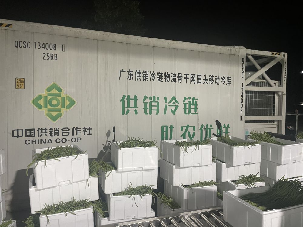 广东供销冷链物流移动冷库在乐昌市梅花镇开展豇豆田头收购。新华社发。