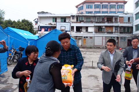在芦山县灾区,王小刚和业务处、安全处、老邻居公司负责人一起代表省社看望了由县供销社负责的2个灾民安置点,向他们送去了米、油等生活必须品。并希望他们保持稳定,克服困难,重建家园。
