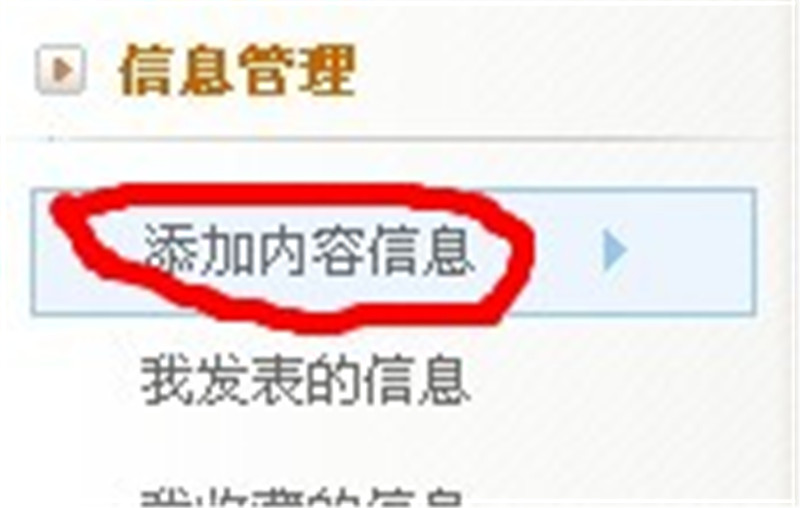 点击左上角“信息管理”进入信息管理界面。点击左侧“添加内容信息”