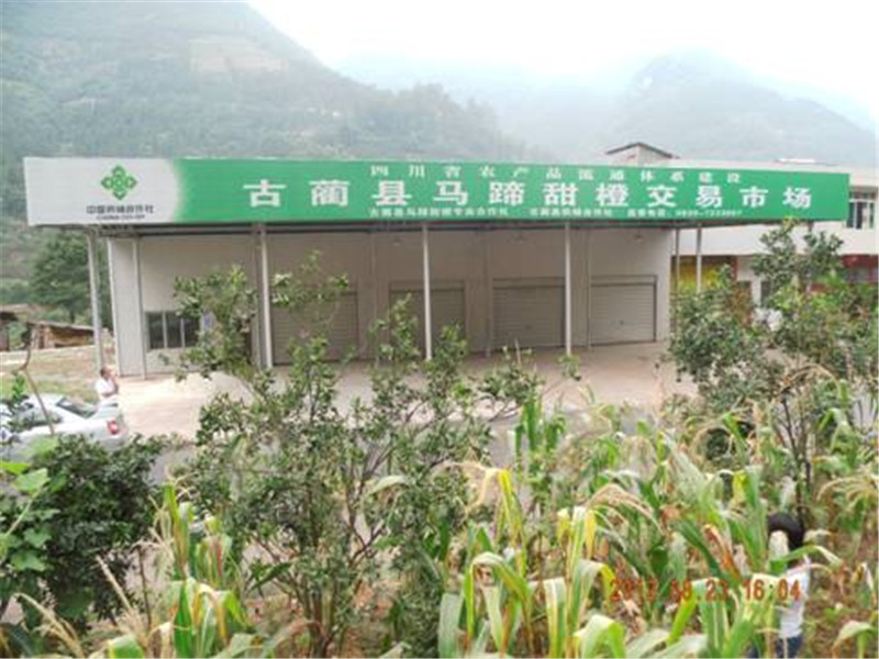 该交易市场占地面积300余平方米,水果摊位5个,使用全省统一的农产品标识标牌,总投入18万元。该项目的建成为马蹄乡万亩生态甜橙示范基地的水果提供了直销交易平台,让种植户的水果交易更加方便、快捷,成为助农增收的一个新亮点。