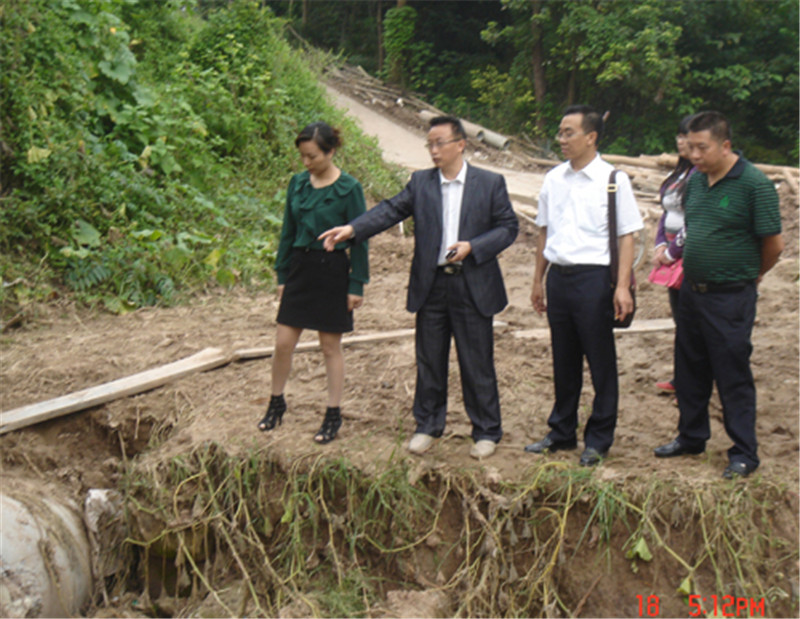 遂宁市社副主任马英同志(左一)到射洪视察灾情