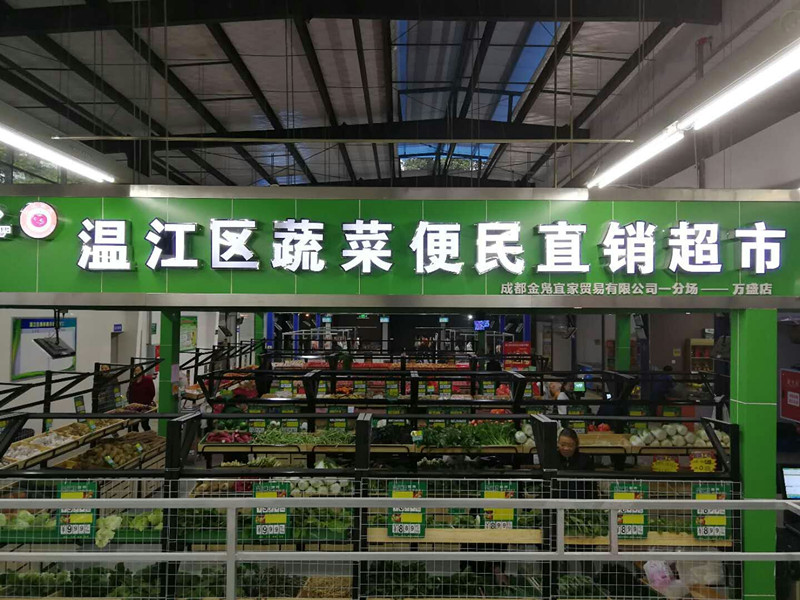 在新开业的万盛农贸市场内,最吸引大家眼球的还是温江区蔬菜便民直销超市万盛店。整个超市占地约200平方米,完全按照超市化规范进行打造,统一的开放式货架,分为蔬菜区,水果区,杂粮区等,各种商品琳琅满目,干净整洁,真正营造了让消费者放心的购物环境。超市还通过统一收银方式,有效提高交易效率和诚信水平,实现所售商品有源可溯、有据可查。