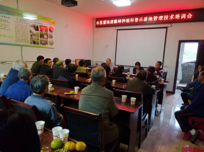 魏达钦理事长从甜脆柿的整形修剪、土肥管理、病虫害防治、柿果的采收与包装等五个方面进行详细讲解和现场演示,解答提问30个,发放技术培训资料300份。