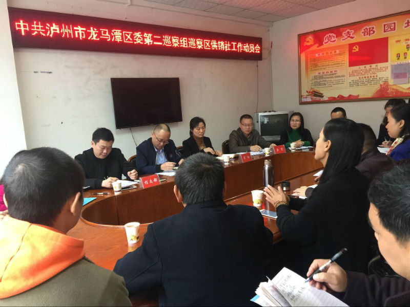 11月1日上午,泸州市龙马潭区委第二巡察组巡察区供销社工作动员会在区供销社会议室召开,区供销社领导班子成员、全体干部职工、四个基层供销社负责人、一个电商公司负责人约20人参加会议,标志着区委对区供销社为期一个月的集中巡察拉开序幕。