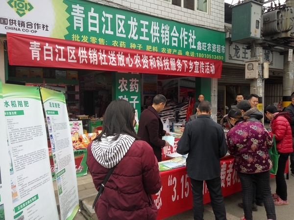 为加强农资商品质量监管,推进国家食品安全城市创建工作,确保农产品质量安全,青白江区供销联社一是建立农资商品监管信息平台,建立健全了农资商品备查制度和进销台账,严格执行农资商品“三证”制度,严把农资商品的进货关、库存关、销售关,形成农资商品质量可追溯;二是加强农资统配统供安全经营体系建设,推进农资经营服务连锁化、品牌化、规范化建设,实行“统一进货、统一配送、统一价格、统一服务”,确保农资商品价格稳定、质量保证;三是建立健全农资放心店管理制度,加强农资放心店日常检查,积极配合农业执法部门加强农资市场检查,规范农资放心店经营行为,有效杜绝假冒伪劣农资商品进入供销社流通领域;四是加强农资从业人员培训,全年举办培训会 6 次,培训人员 310 余人次,进一步提高了农资从业人员的业务素质和服务水平;五是构建农业绿色防控体系,加强农业新技术、新品种宣传推广工作,积极推广使用有机肥和低残留农药,提升农产品品质,为农业增效、农民增收作贡献。