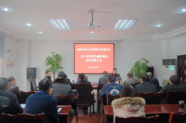 按照区党风廉政建设责任制领导小组关于开展2017年度述责述廉工作相关要求, 12 月22日,区供销联社组织召开了2017年度 述责述廉大会, 机关全体工作人员及所属各单位中层以上干部、群众代表、服务对象共计32人参加了会议。区供销联社党组成员、纪检组长主持会议。