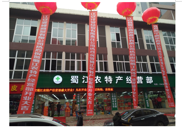 12月28日,蜀江农特产经营部在江安县碓窝巷隆重开业。蜀江农特产经营部是县供销社通过相关程序引进有实力业主合作,销售推广江安县名、优、特农产品。