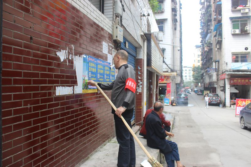 劳动中同志们不怕脏、不怕累,抬的抬、扛的扛、拉的拉、铲的铲,有的额头上沁出了汗珠,有的拿着铁锹把难铲的石块一块块地堆放在一起,扫把和铁揪汇成一个个动听的音符,经过2个多小时的劳动,清除了很多垃圾铲掉了很多小广告,瞬间,整个兴安巷大街被打扫得一尘不染,大家在愉悦的气氛中结束了此次劳动。 (赵晓钢)