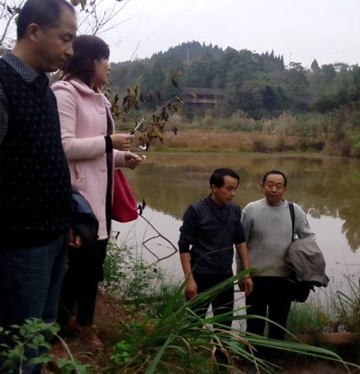 近日来,大英县供销社派到天保镇狮子寨村第一书记何俊阳(右二)率领狮子寨村副书书记陈艳(左二)、村支部书记黄明智(右二)、村主任张云光等深入到全村各社,认真调研全村水利设施情况。