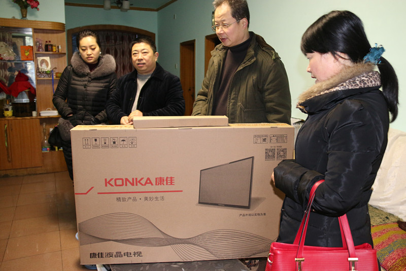寒冬腊月,情暖人心。在得知供销系统原职工黄玉华细心照料瘫痪丈夫十余年的感人事迹,李德彬主任一行带着大米、食用油及500元慰问金来到黄玉华家中,详细了解他们的生活状况和存在困难。当看到因为丈夫发病毁坏了的电视机无法观看,李德彬主任立即带头捐款,并联系电器卖家,为黄玉华家中捐赠了一台42寸的康佳液晶电视。黄玉华看到短短半个小时家中安装起了新电视,激动的热泪盈眶“感谢李主任,居然这么快就换了新电视,让我能看成春节联欢晚会了,真的太感谢了......”。朴实的话语,深切的情谊。李德彬主任在走访过程中时刻叮嘱大家,在以后要多走访,多了解,多沟通,多为他们解决实际困难问题,帮助他们度过难关,让困难群众感受到党和政府的关怀和温暖。