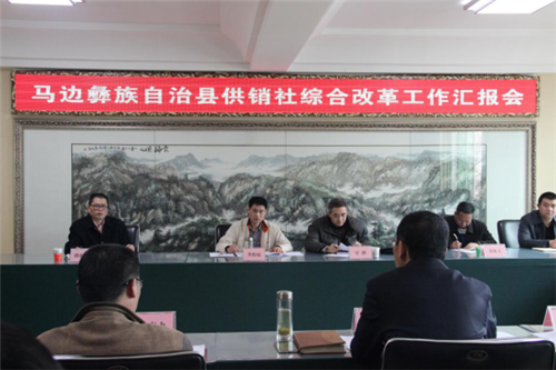 为此,马边县政府专题召开供销社综合改革试点工作汇报会,乐山市农工委副主任甘麟参加汇报会。县政府副县长王嘉骏汇报了马边当前供销综合改革试点工作情况、现阶段供销工作存在的问题以及下一步的工作计划。