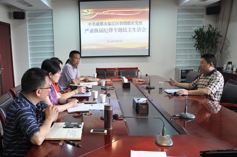 5月5日,成都市温江区供销联社召开领导班子严肃换届纪律专题民主生活会,联社党组书记、主任李德彬同志主持会议。