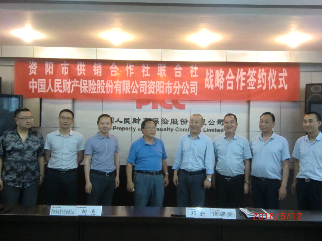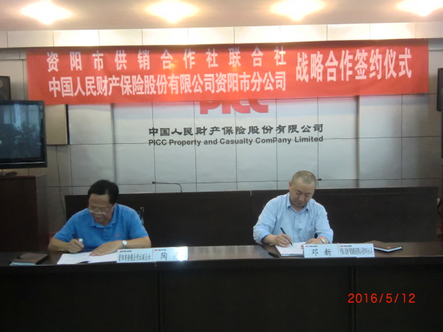 为充分利用各自优势和经验,互相支持对方拓展服务领域和内容,共同打造“三农”服务综合平台,经过多次友好协商和沟通,5月12日,资阳市供销社与中国人民财产保险股份有限公司资阳市分公司战略合作协议正式签订。市供销社班子成员及有关科室负责人、中国人民财产保险股份有限公司资阳市分公司领导班子、办公室、农业保险部、保险业务部负责人等参加签约仪式。