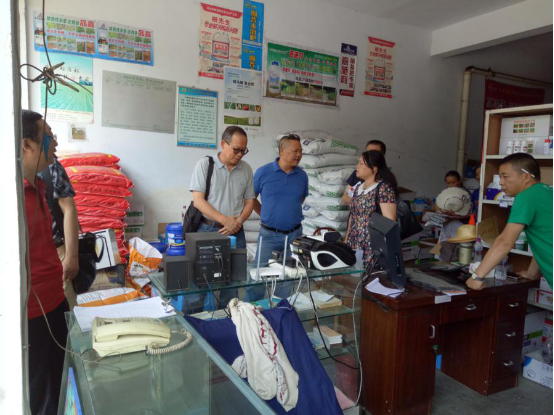 6 月1 7 日下午,福建省社农资办主任赵斌带队一行6人,在成都市农委社务指导处副处长夏丰、 郫县供销社主任叶永东 的陪同下 实地考察了郫县安德社区综合服务社 的建设 和 农资 配送中心 及 安德镇望乐村农资放心店 。 赵斌 一行人仔细查看了农资放心店经营的农资商品、购销台账、农药包装以及管理制度、门店标识和经营环境,并向庄稼医生询问了农资进货渠道、农技服务和便民措施等情况。