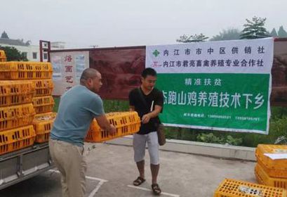 6月21日,内江市中区供销社和内江市君亮畜禽养殖专业合作社有关人员清晨5点专程赶到伏龙镇牛角田村开展精准扶贫工作。牛角田村“第一书记”周林和专合社的工作人员将650只跑山鸡鸡苗,发放到10户加入专合社的贫困户手中,并进行了登记造册。