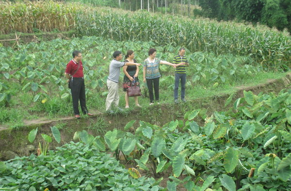 8月4日,内江市供销社主任蔡金芳带领相关人员到联系帮扶的贫困村资中县马鞍镇黄石坎村调研脱贫攻坚工作。蔡主任一行到田间具体查看了引进的威远香芋的长势,了解了产业扶贫的整体情况,并听取了村干部对黄石坎村开展脱贫攻坚工作的情况介绍,尤其是关于拟修缮的山坪塘石砌田坎所需项目资金预算及筹集的相关情况,商议确定各帮扶单位具体出资金额。
