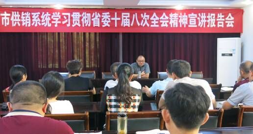 近日,自贡市供销社召开中心组理论学习(扩大)会议,邀请自贡市委党校基础理论教研室主任李翔老师,为市社机关全体干部职工、各直属企业党政负责人、机关离退休支部代表就学习贯彻省委十届八次全会精神做专题宣讲报告。会议由市社党组成员、机关党委书记林选明主持。